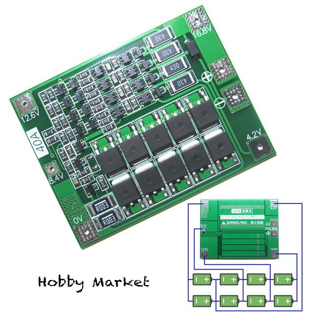 BMS protectie, echilibrare acumulator Litiu 4S 18650, 40A