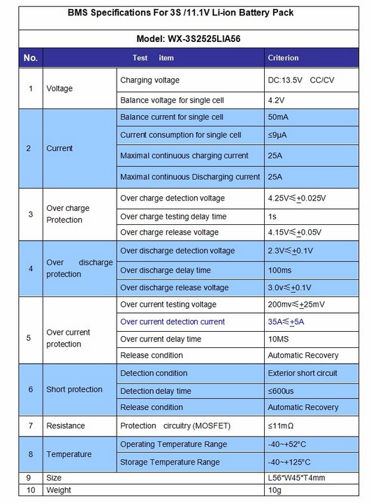 Tip modul BMS sau conexe:: BMS 3S
