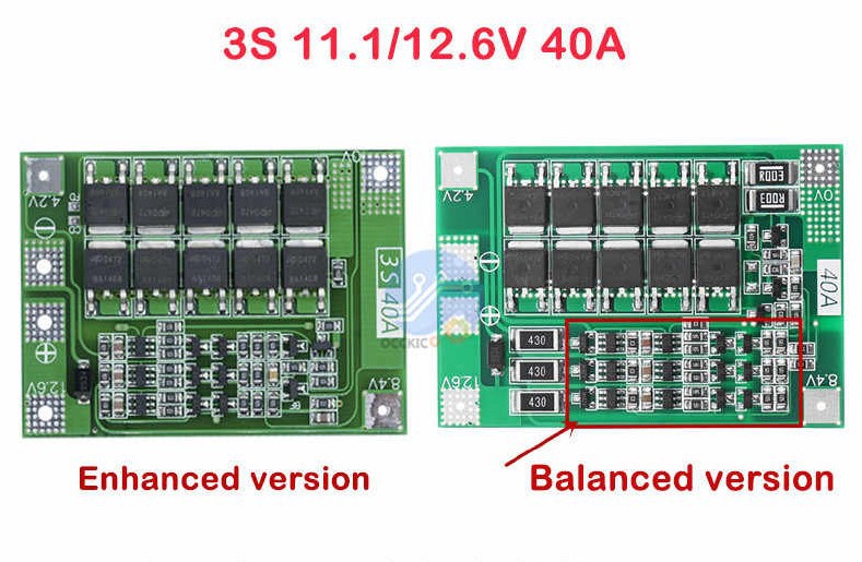 BMS protectie, echilibrare acumulatori Litiu 3S 18650, 40A.