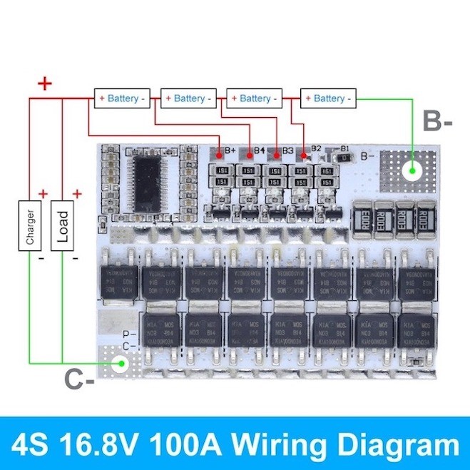 BMS protectie la incarcare acumulatori Litiu 18650, 3S/4S/5S, 100A