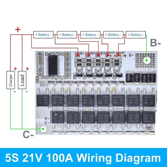 BMS protectie la incarcare acumulatori Litiu ion 18650, 3S/4S/5S, 100A