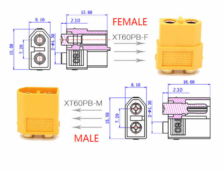 Pereche Conectori XT60 mama-tata 2 pin (1 conector mama, 1 conector tata)