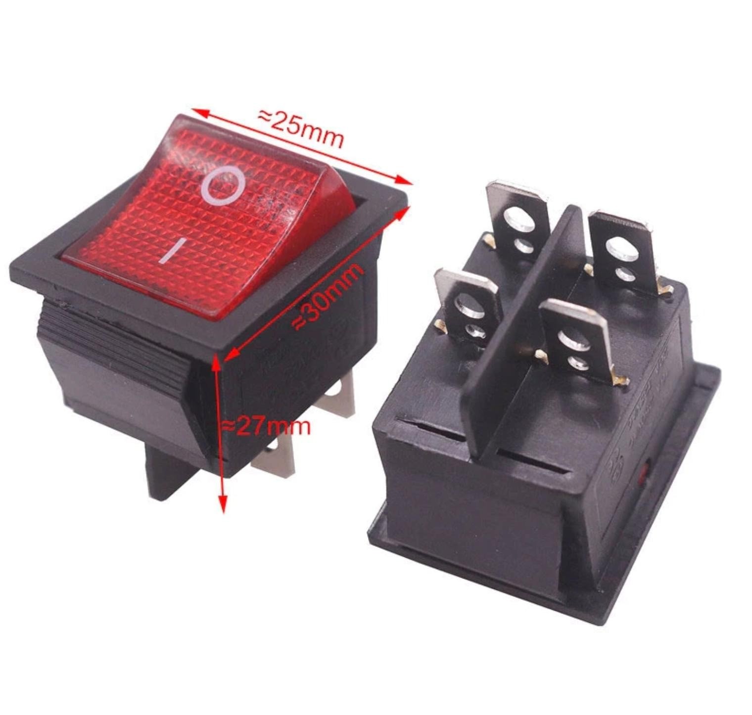 Intrerupator KCD4 25x30mm 15A/250V 4 Pini rosu on/off