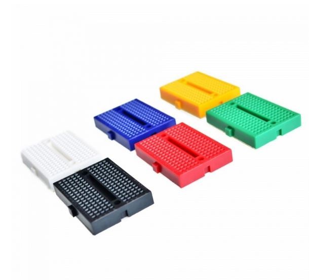 Mini breadboard 35x47x8.5mm, 170 puncte, disponibil in diverse culori (albastru, alb, rosu, galben, verde).