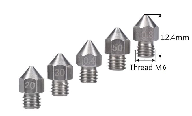 Duza 0.2mm inox, filament 1.75mm M6 hexagon 7