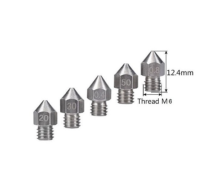 Duza 0.2mm inox, filament 1.75mm M6 hexagon 6: