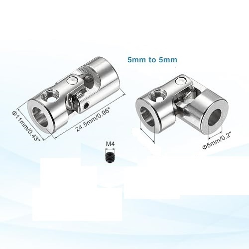 Cuplaj cardanic adaptor D5 mm la D5 mm, realizat din otel rezistent, ideal pentru transmiterea miscarii intre axul motor si arbore. Potrivit pentru aplicatii cu turatie ridicata, fixare prin suruburi M4 incluse.