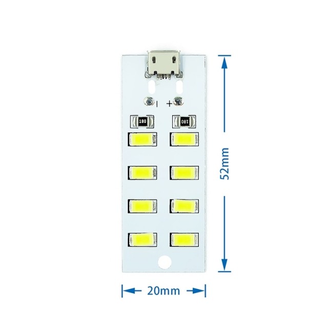 Placa de iluminat 8 LEDURI 4x2 cu micro USB (set 2 buc), ce foloseste leduri de inalta calitate fixate pe o placa de aluminiu pentru disiparea caldurii (previne supraincalzirea).
