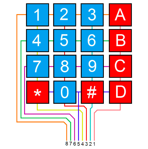 - 16 butoane: cifrele 0 - 9, caractere A - D, *, #