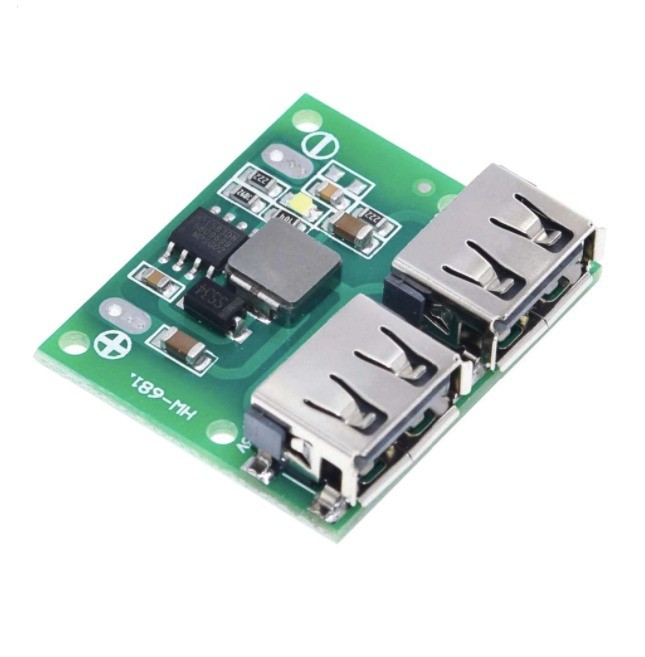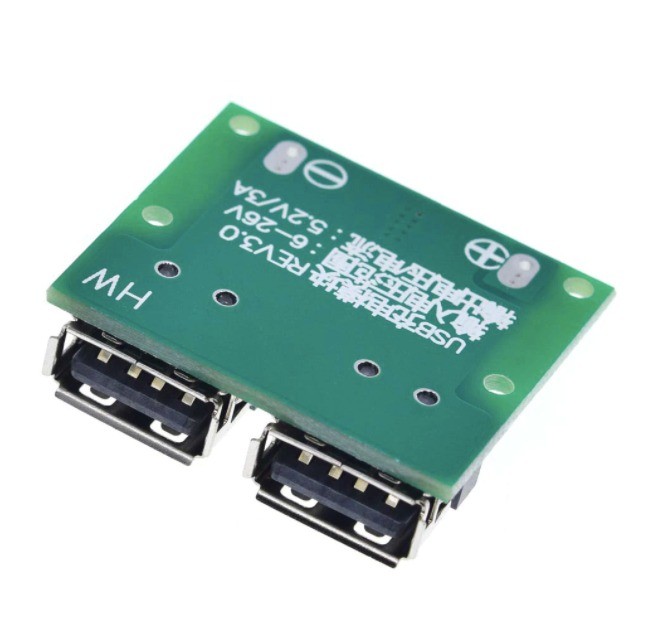 Modul dual USB incarcare rapida DC-DC 9/12/24V la 5V HW-681, 3A acumulatori Li-Ion 18650