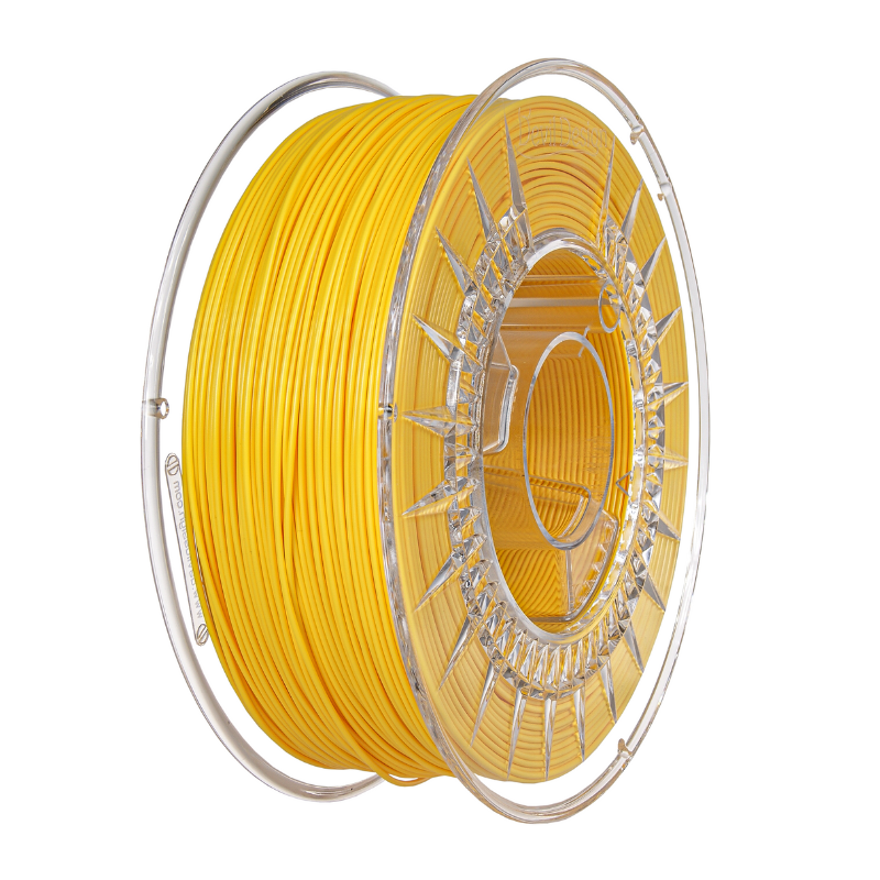 Filament PLA Devil Design galben aprins (Bright Yellow), diametru 1.75 mm, rolă 1 kg, ușor de printat, cu finisaj uniform și compatibil cu imprimantele 3D FDM/FFF.
