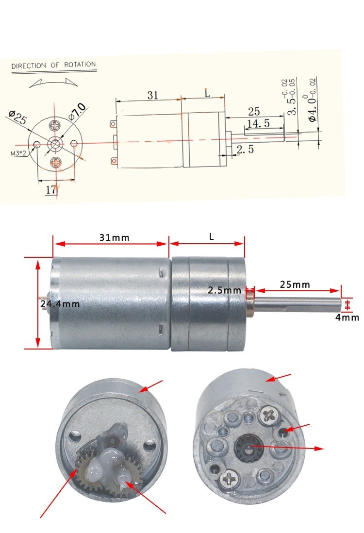 Motor cu Reductor 25GA370, 12VDC, 10rpm