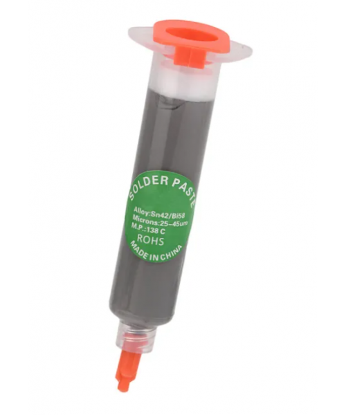 Pasta pentru lipit compusa din aliaj Sn42 si Bi58, cu temperatura de topire de 138 grade Celsius. Special conceputa pentru lipituri eficiente la temperaturi scazute, utilizata in aplicatii electronice si electrice.