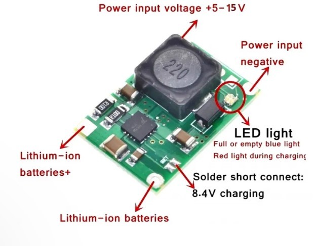 Compatibil cu 4.2V si 8.4V (1 sau 2 in serie) baterii Litiu