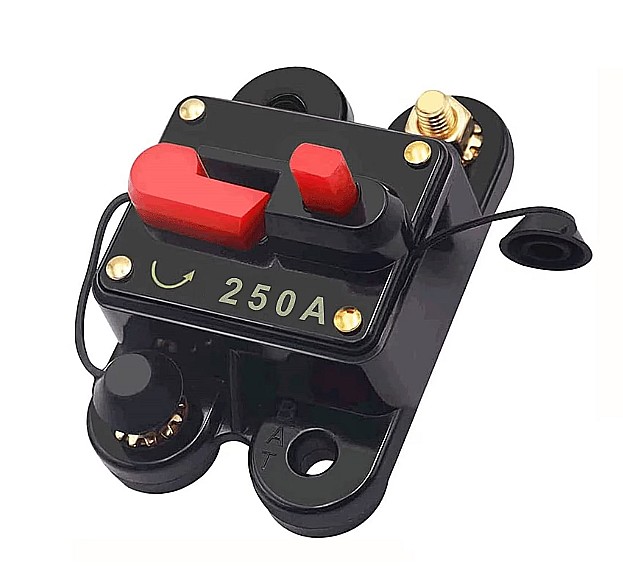 Siguranta Auto de Circuit cu Reset 250A / intrerupator de circuit / protectie de circuit / siguranta de protectie cu rol de a intrerupe circuitul atunci cand este supraincarcat. Cu functie de repornire, montabil pe circuitul de alimentare