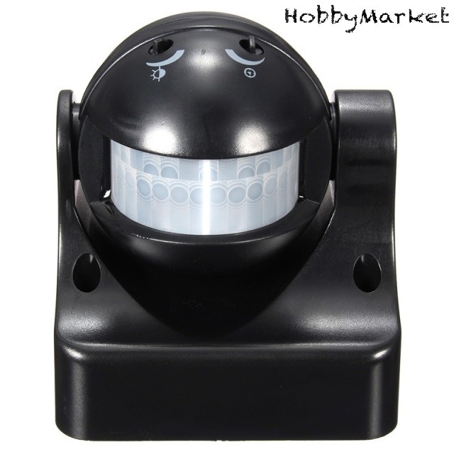 Senzor Miscare PIR 220V AC Negru la 180 grade, interior & exterior, reglare verticala mecanica, IP44.