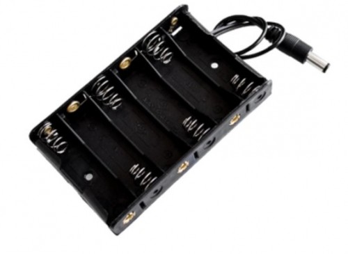 Suport negru baterii 6xAA cu cablu si mufa jack, 9V.